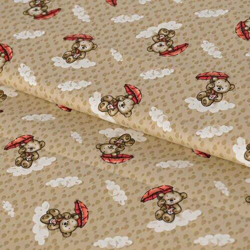 Detalhe Tecido de Algodão Estampado (Meio Metro) - Ursinho Fundo Bege