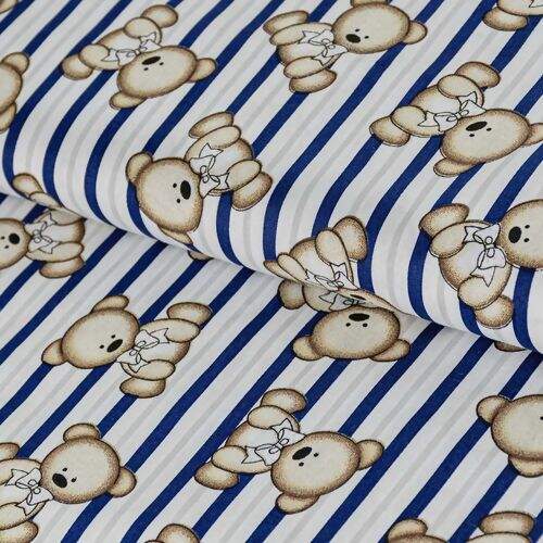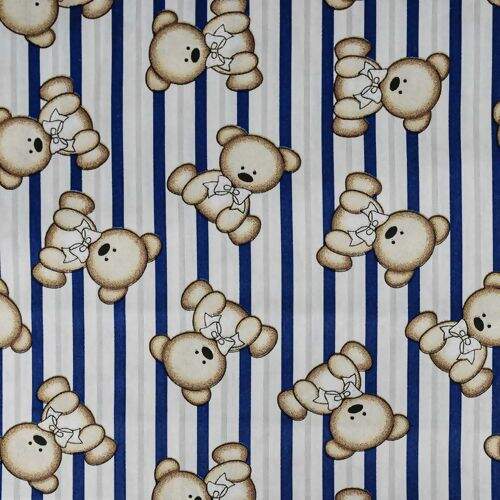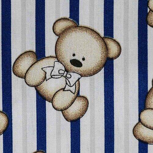 Descrição Tecido de Algodão Estampado (Meio Metro) - Ursinhos Listras Cinza e Marinho