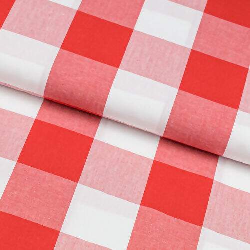 Tecido de Algodão Fio Tinto (Meio Metro) - Xadrez 50 mm Vermelho e Branco