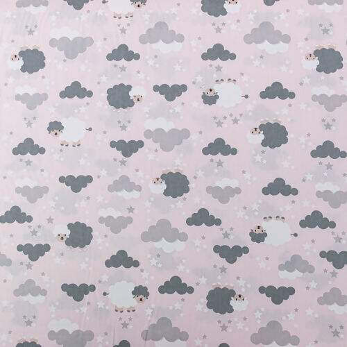 Tecido Estampado 100% Algodão (Meio Metro) - Ovelhas e Nuvens Rosa