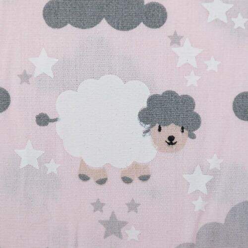 Descrição Tecido Estampado 100% Algodão (Meio Metro) - Ovelhas e Nuvens Rosa