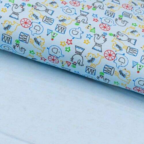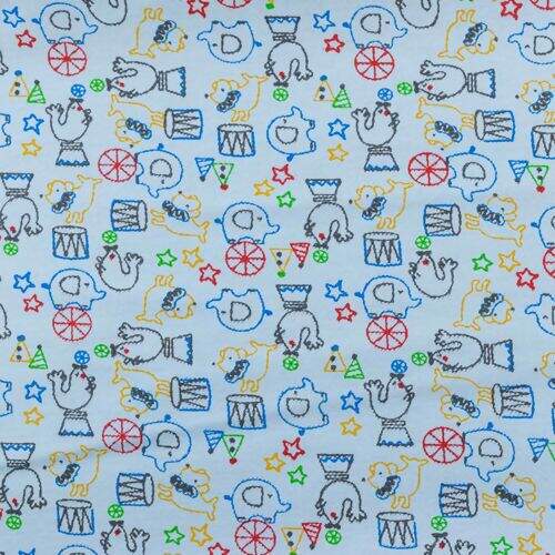 fornecedor_bling Tecido Flanela Estampado 0,50 x 0,80 mt - Animais Circo Fundo Azul