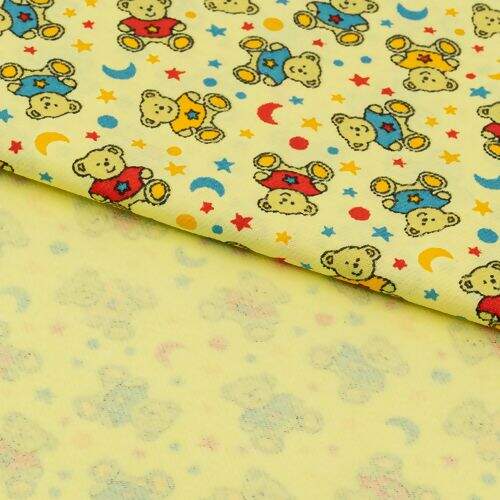 Tecido Flanela Estampado 0,50 x 0,80 mt - Ursinhos Fundo Amarelo