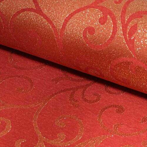 NCM Tecido Jacquard Lurex (Meio Metro) c/ 1,40 mt de Largura - Vermelho e Dourado