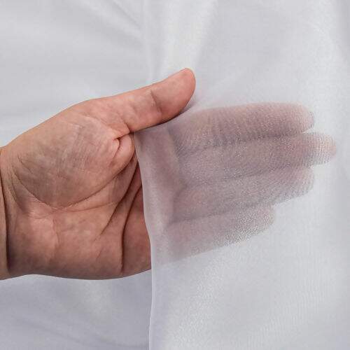 Organza Cristal é um tecido leve e delicado com transparência e brilho.