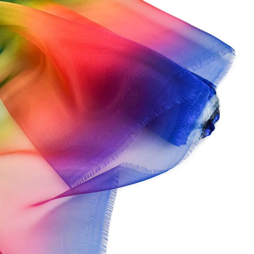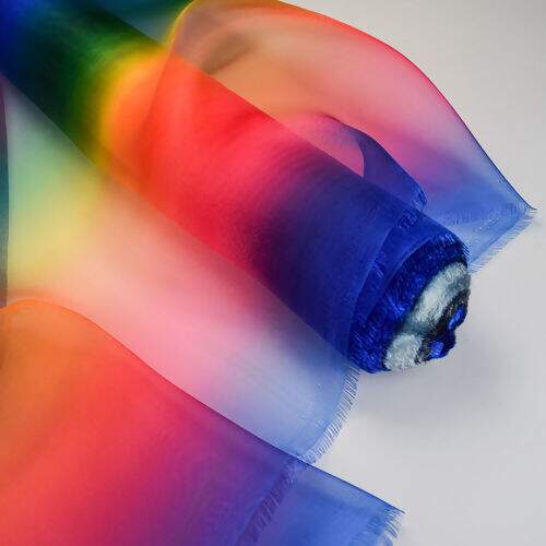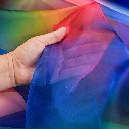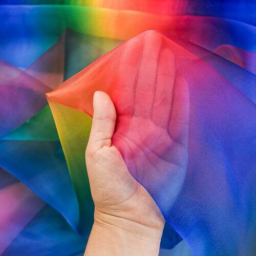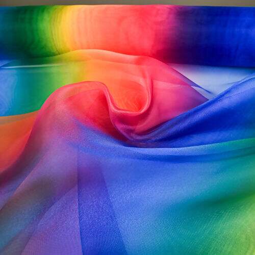 Ideal para quem busca um toque de magia e sofisticação em suas criações, esta Organza possui um efeito degradê nas cores vibrantes do arco-íris.