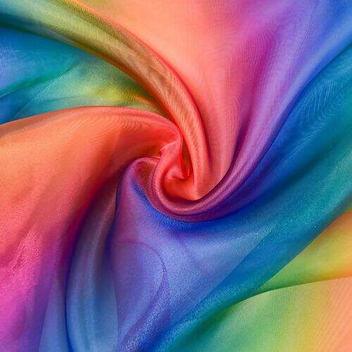 Descrição Tecido Organza Multicor Degradê Arco-íris - 1 Metro