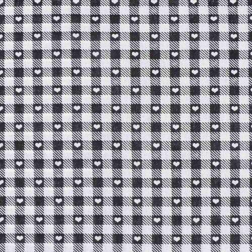 Tecido Popeline 100% Algodão Xadrez Preto e Branco com Corações 1 Metro