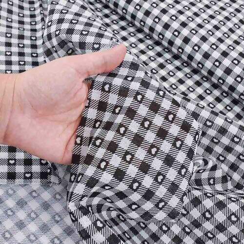 Descrição Tecido Popeline 100% Algodão Xadrez Preto e Branco com Corações 1 Metro