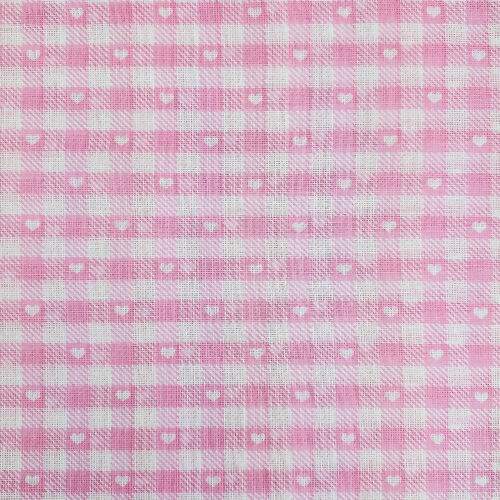 Descrição Tecido Popeline 100% Algodão Xadrez Rosa e Branco com Corações 1 Metro