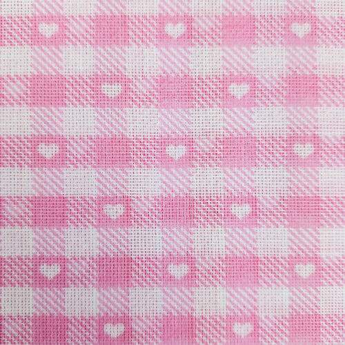Tecido Popeline 100% Algodão Xadrez Rosa e Branco com Corações 1 Metro