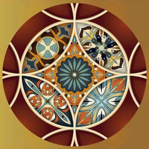 Descrição Tecido Sarja Estampa Digital (47 cm) - Sousplat Mostarda