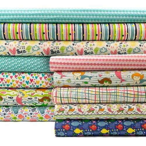 Linda Coleção de Tecidos 100% Algodão com estampa de Sereia e Fundo do Mar!