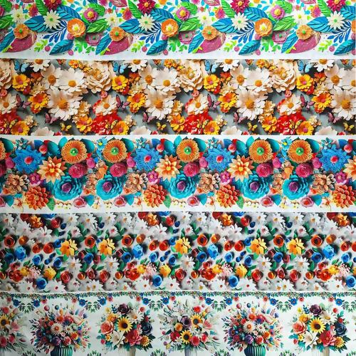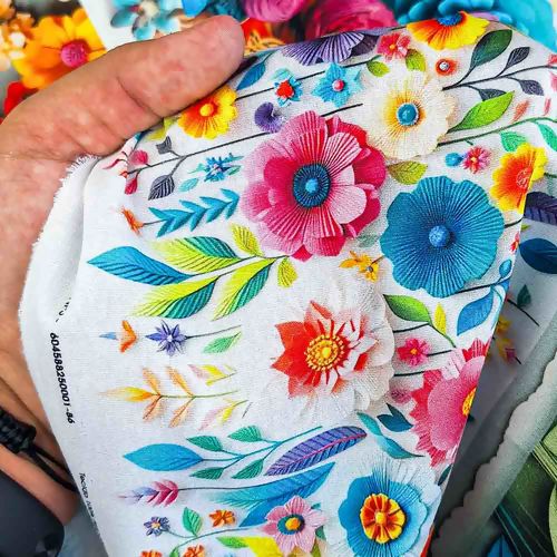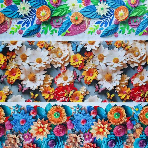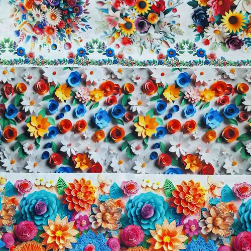 Transforme seus projetos com a beleza vibrante e realista do nosso tecido tricoline de estampa 3D com flores coloridas e borboletas. Adquira já e inspire-se a criar algo extraordinário!
