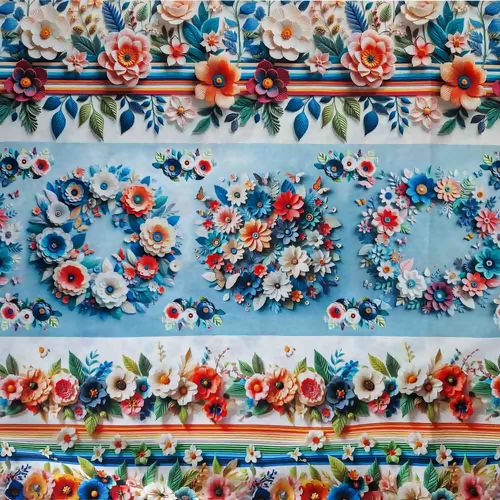 Descrição Tecido Tricoline Estampa 3D Flores e Borboletas Faixas 0,50x1,50m