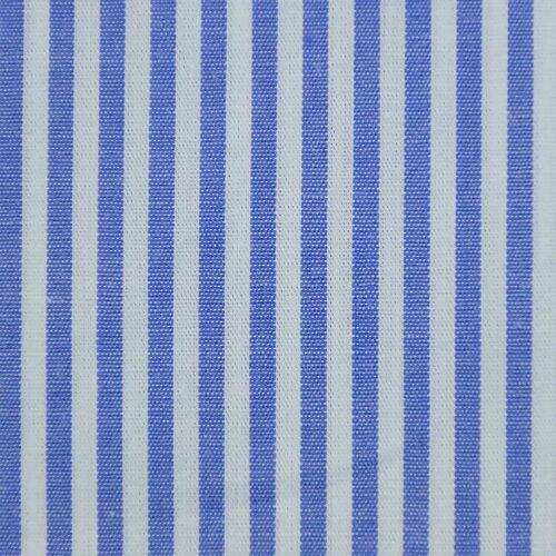 O tecido tricoline listrado em fio tinto possui largura de 1,50m e está disponível para compra a partir de meio metro de comprimento.