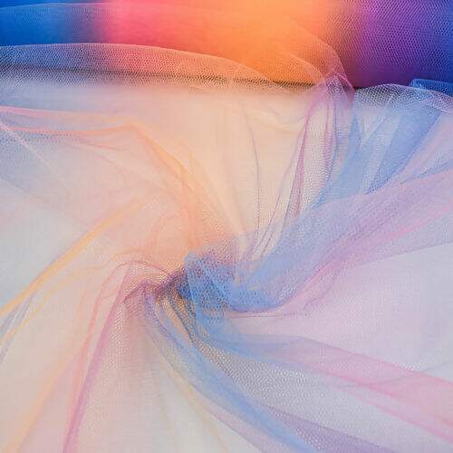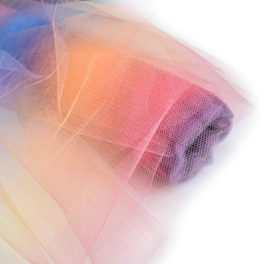 Encante-se com a beleza e a delicadeza do nosso Tecido Tule Multicor Degradê Unicórnio.