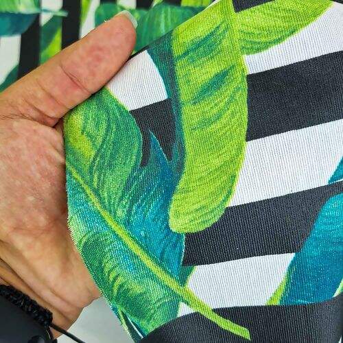 Descrição Tecido Waterblock Estampado (Meio Metro) - Folhagem Listrado