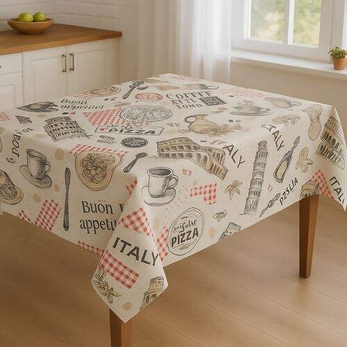 Fabricada com material plástico térmico de alta durabilidade, essa toalha resiste a temperaturas de até 140°C, sendo ideal para proteger sua mesa contra o calor, manchas e sujeiras do dia a dia. A estampa Buon Appetito traz elementos inspirados na Itália, criando um clima aconchegante e elegante para o ambiente.