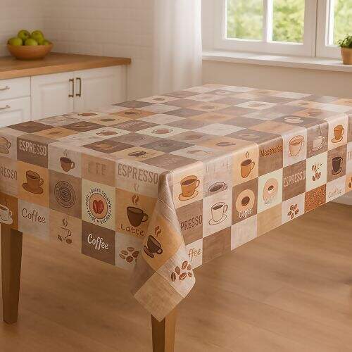 Ideal para o uso diário, a toalha é produzida em material plástico de alta durabilidade, sendo fácil de limpar, resistente à água e perfeita para proteger sua mesa de manchas e sujeiras. A estampa Coffee traz elementos inspirados no universo do café, adicionando um clima acolhedor e elegante ao ambiente.