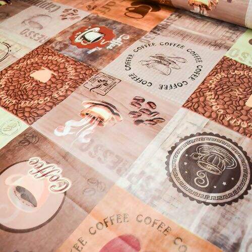 Toalha de Mesa Plástica Neo Sanem com 1,40m de Largura- Estampa Coffee