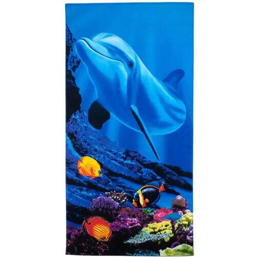 Informações Têxteis Toalha de Praia Aveludada 76x152 cm - Golfinho e Peixes